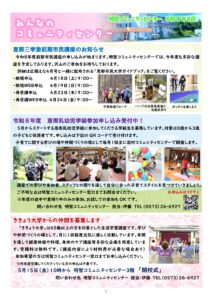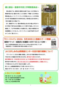 ホーム > あけちだより4月号 Tweet あけちだより4月号 あけちだより4月号です。どうぞご覧ください。 あけちだより4月号PDF カテゴリー あけちだよりお知らせ乗ろまい地域協議会だより学ぼまい明智みらい会議楽しもまい自然の癒し行こまい 最新記事 4月5月の大正村情報あけちだより4月号「クラシックカーフェスティバル2026」開催のお知らせ3月4月の明知鉄道情報あけちだより3月号